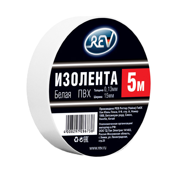 Изолента ПВХ 0,13*15мм Белая 5м, 28673 8