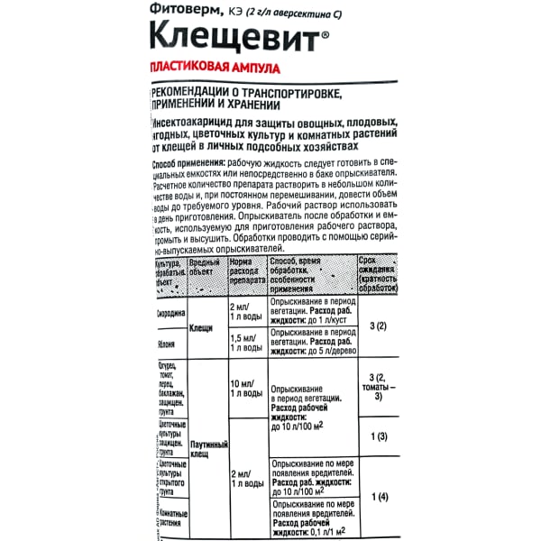 Средство для садовых растений для защить от клещей «Клещевит» 4 мл