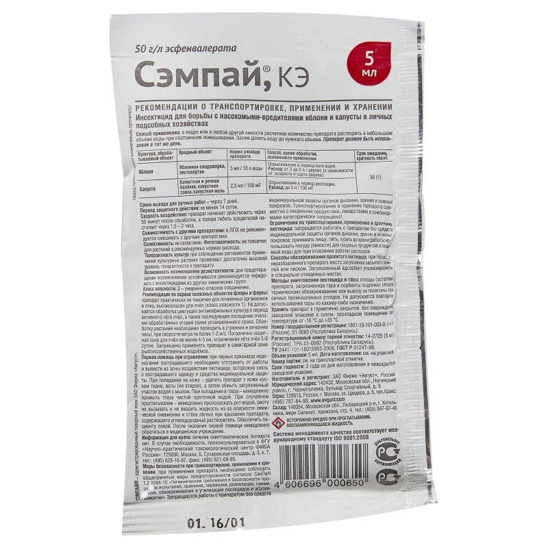Средство для защиты садовых растений от листогрызущих вредителей «Сэмпай» 5 мл