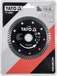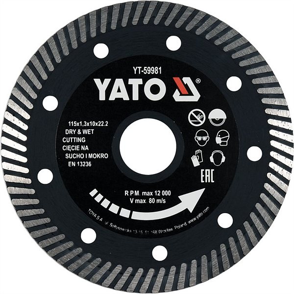 Yato YT-59981 - это отрезной диск, который относится к бытовому классу оборудования. Он характеризуется диаметром 115 мм и посадочным местом 22.2 мм. Прекрасно подходит для резки бетона, керамической плитки, кирпича, мрамора, природного камня.