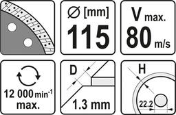 Технические характеристики Yato 115x1.3x10x22.2мм (YT-59981)