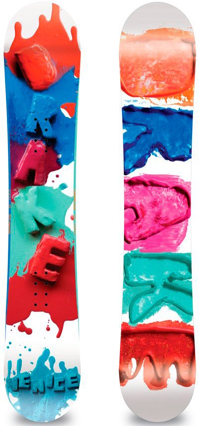 Женский; стиль катания универсальный; конструкция сэндвич; форма Twin Tip - Directional; скользящая поверхность экструдированная (extruded); количество закладных 4 пары; ростовка 143 см.
