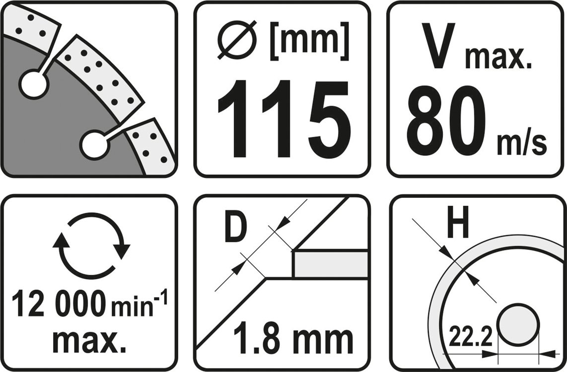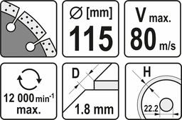 Технические характеристики Yato 115x1.8x10x22.2 мм (YT-59961)