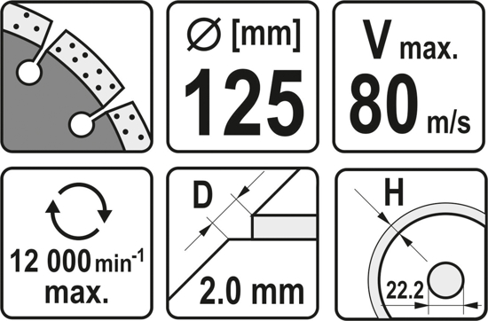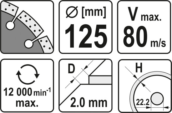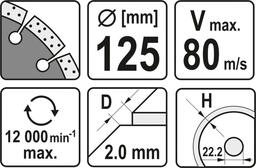 Технические характеристики Yato 125x2x10x22.2 мм (YT-59962)