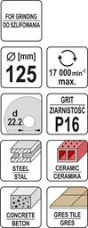 Технические характеристики Yato 125х22.2 мм, Р16 по дереву, металлу, камню (YT-83261)