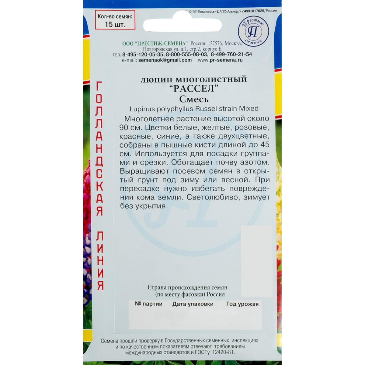 Люпин многолистный «Рассел» смесь окрасок