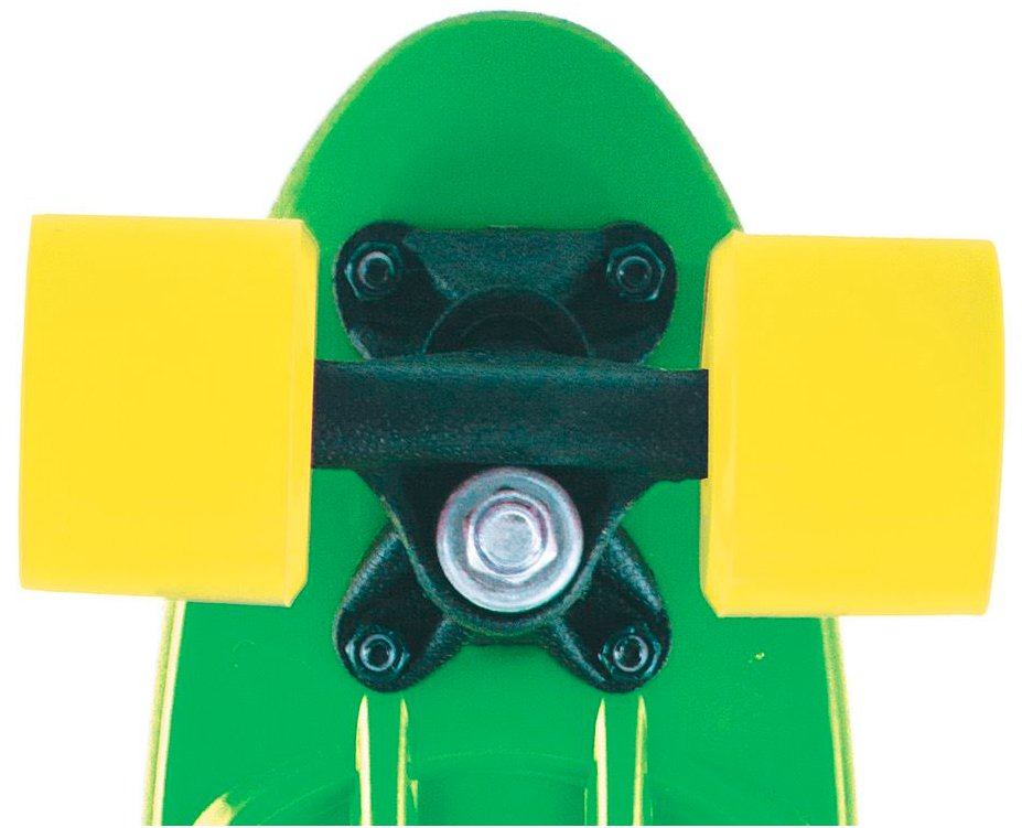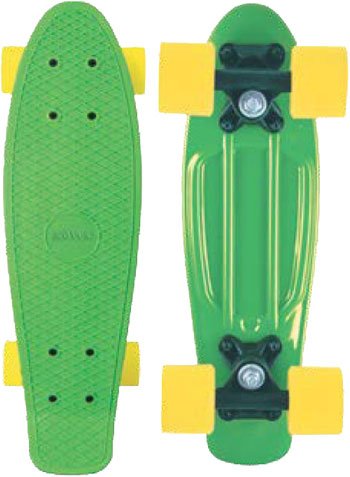Миниборд из высокопрочного пластика. Размер деки: 17x5". Подвеска: пластиковый трак, 3.25". Колеса: ПВХ, 60x45 мм., жесткость 78A. Подшипники: 608Z. Вес 1.8 кг. Цвет зеленый.