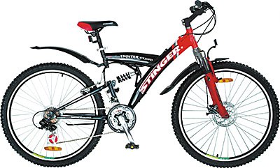 Горный, кросс-кантри, двухподвес, материал рамы - сталь, колеса - 26 ", трансмиссия 21 скор, Тормоза: передний - дисковый, задний - ободной.