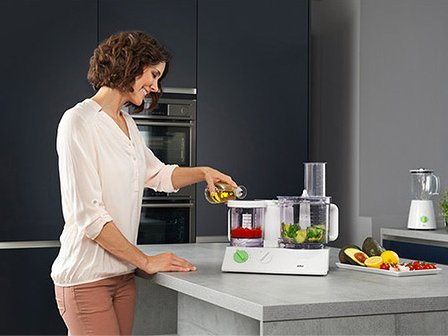 ОписаниеУникальная система чаш "side-by-side" Удобство, практичность и эффективность – обе чаши всегда готовы к работе. Большая универсальная чаша с компактным измельчителем позволяет готовить самые изысканные блюда без особых усилий. Равная высота чаш гарантирует еще более легкое и удобное использование. Функция предустановки скорости Для быстрого и качественного результата без необходимости переключения скоростей во время работы. Комбайн начинает работу сразу на нужной вам скорости. Универсальность насадок Замешивание, взбивание, терки, шинковки, измельчение и многое другое – 7 различных насадок для выполнения любых кухонных задач. Бесшумная сила Меньше шума, больше удобства – делает процесс готовки проще, и тише.