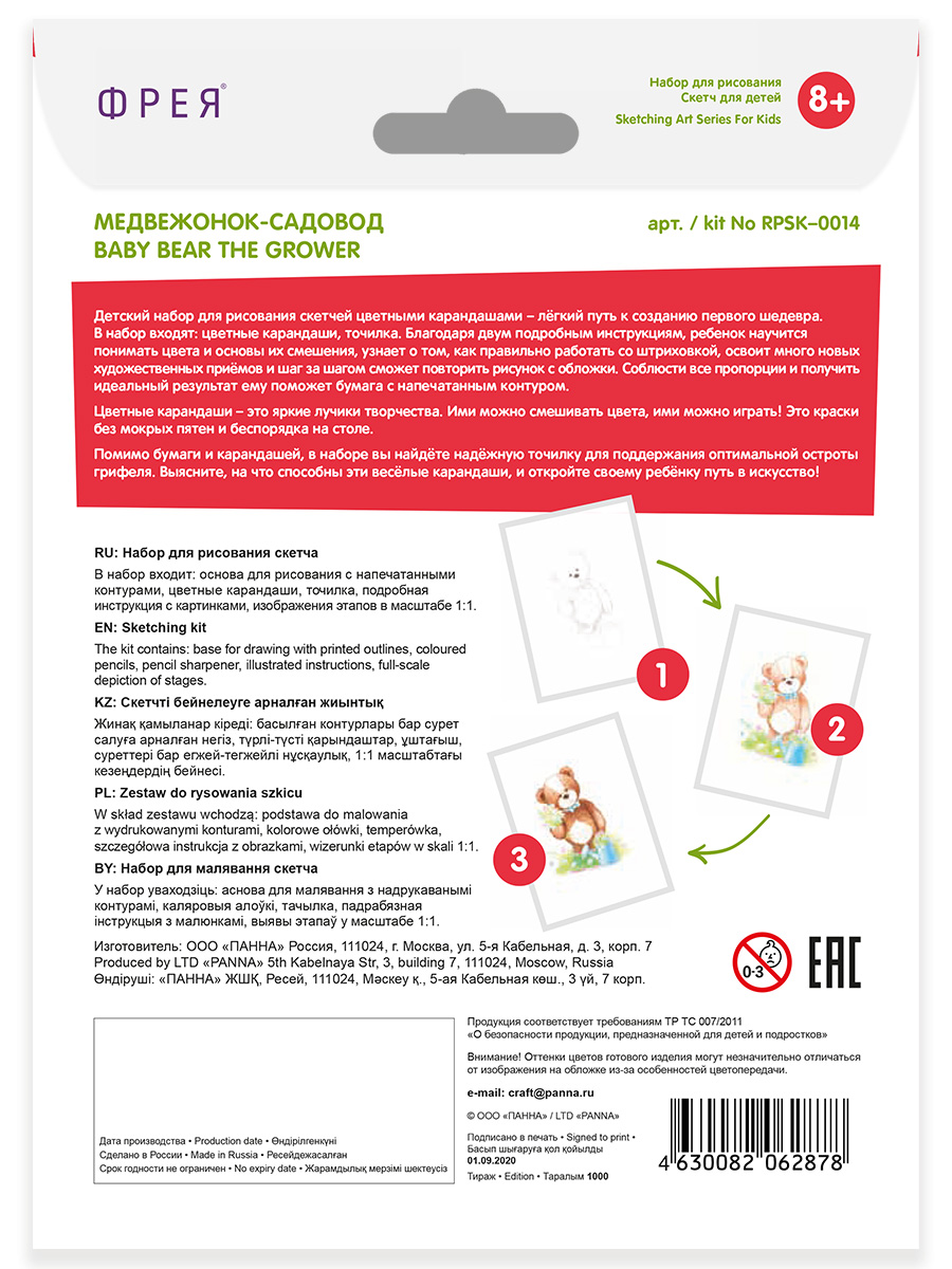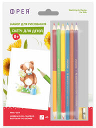 - Состав набора Основа для рисования (чертежная бумага 200 гр), Точилка, Цветные карандаши