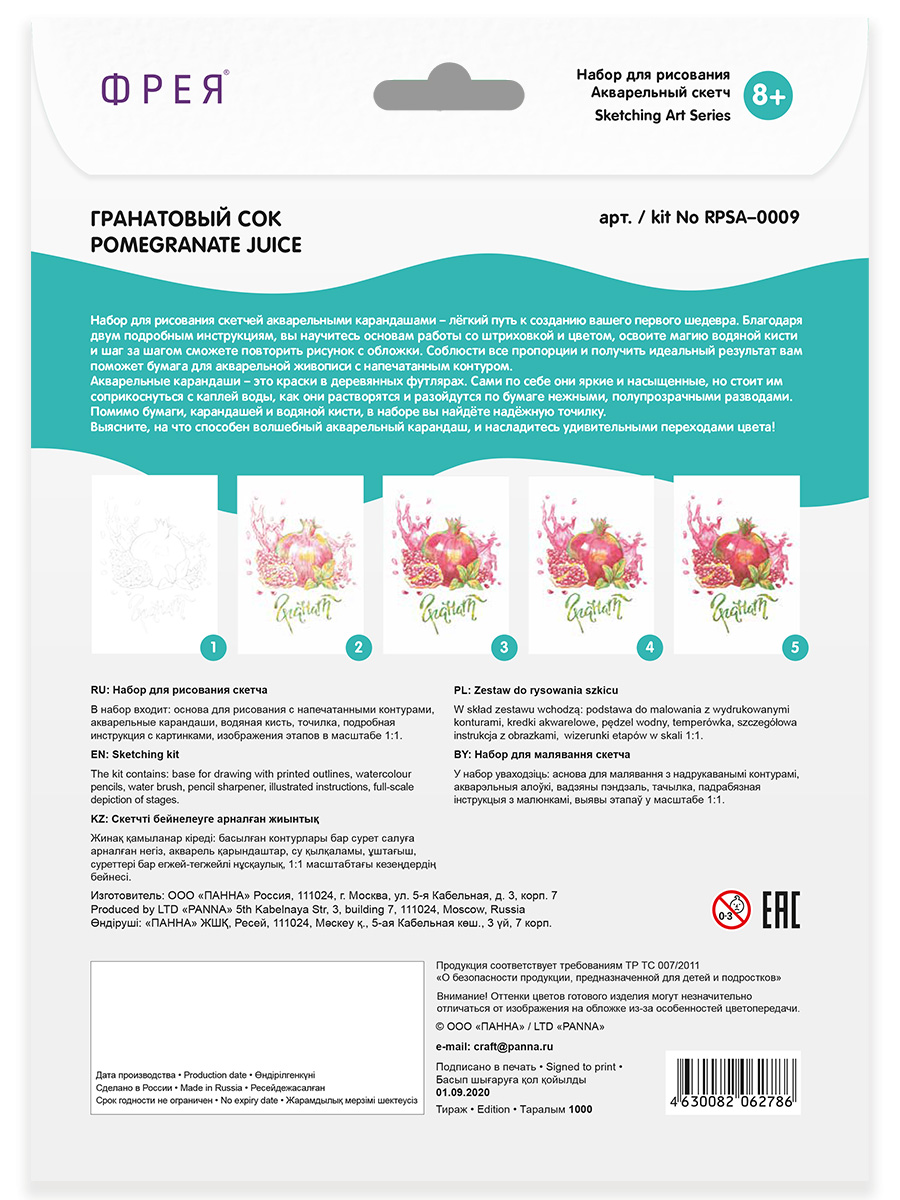 - Состав набора Акварельные цветные карандаши, Водяная кисть, Основа для рисования (бумага для акварели 200 гр), Точилка