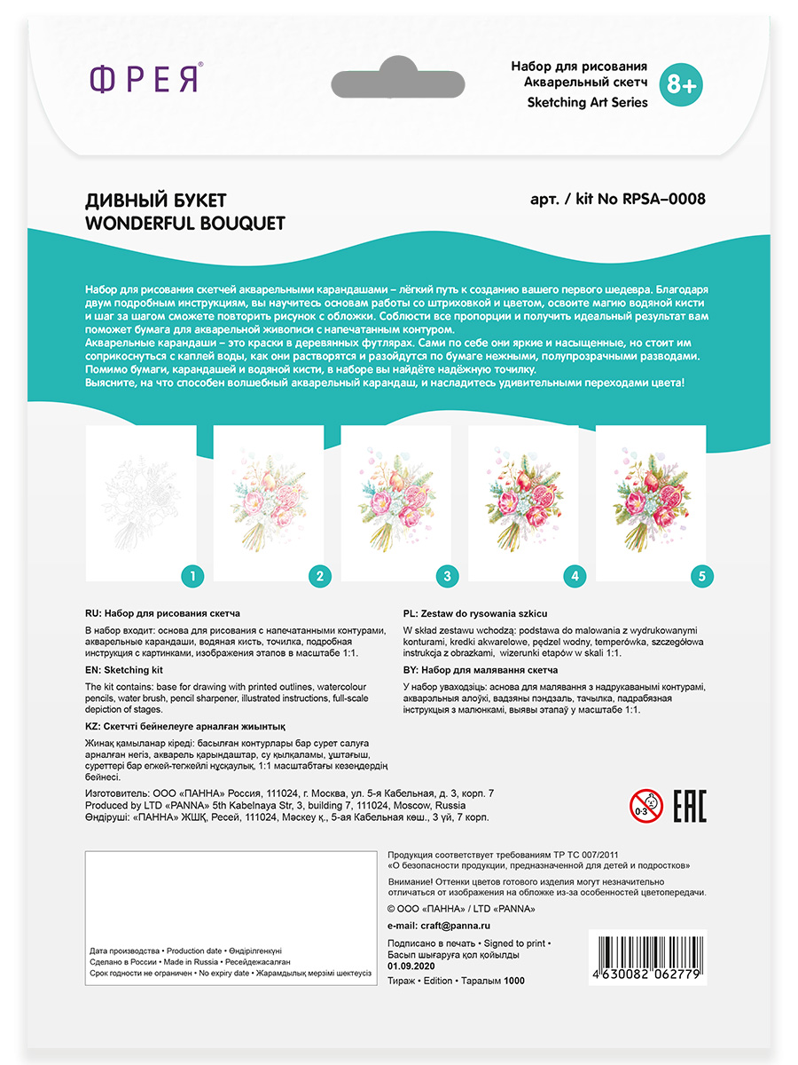 - Состав набора Акварельные цветные карандаши, Водяная кисть, Основа для рисования (бумага для акварели 200 гр), Точилка