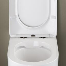 Специальная конструкция чаши, у которой отсутствует ободок, из-под которого обычно поступает вода во время смыва. В виду отсутствия труднодоступных мест такое устройство облегчает уход за изделием и повышает его гигиеничность.