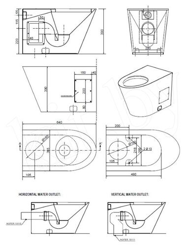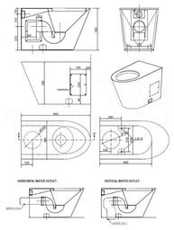 - Выпуск Выпуск – направление отвода воды из унитаза. Выбор выпуска зависит от вида разводки канализации. Различают следующие варианты выпуска: горизонтальный: осуществляется параллельно полу, подключается к стояку через специальную трубу. Наиболее распространенный и удобный вариант; вертикальный: отводит воду прямо в пол, требует наличия смонтированной в полу канализационной системы; косой: представляет собой смыв под углом к полу. Такой тип выпуска применяется, когда канализационная система расположена в полу, но достаточно близко к стене; универсальный (варио): его можно подключить и горизонтально, и вертикально. Труба в данном случае, чаще всего, прячется внутрь корпуса унитаза. Выпуск вертикальный,горизонтальный (в стену)