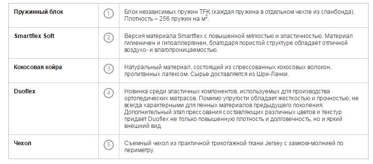 • Плотность пружин (шт/м²) 256