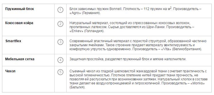 • Описание Матрас на базе классического блока зависимых пружин Bonnell и проверенной комбинации настилочных слоев.