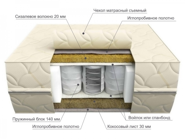 - Описание Максимальный уровень жесткости этого матраса создают настилочные листы из спрессованных кокосового волокна и кактусового волокна сисаловой пальмы, пропитанных натуральным латексом. Такое сочетание материалов дает не только не только отличные эксплуатационные характеристики, но и высокую надежность и длительность срока службы.