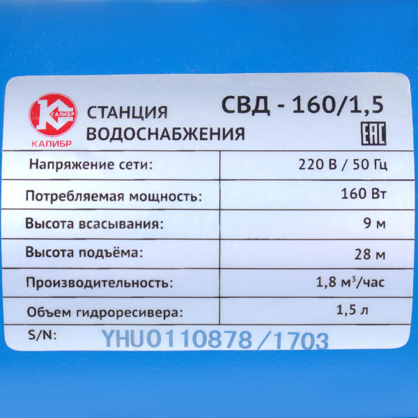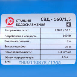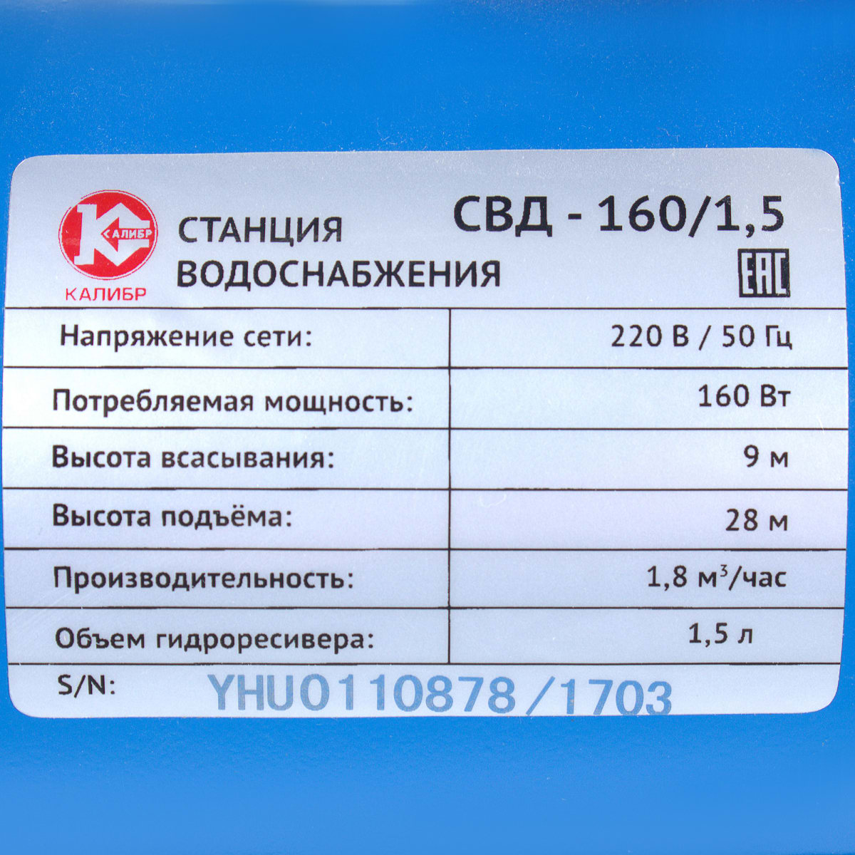 Насосная станция 1800 л/час Калибр СВД- 160/1.5