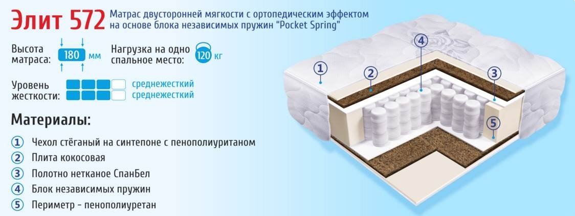 - Описание Ортопедический матрас Барро Элит 572 среднежесткий, высотой 18 см, на основе блока независимых пружин "Pocket Spring" (256 пружин на квадратный метр). Данная конструкция блока независимых пружин обеспечивает сжатие каждой пружины, при оказываемом на нее давлении, распределяет нагрузку по всей площади, обеспечивает высокую точечную эластичность, оптимальную поддержку позвоночника.