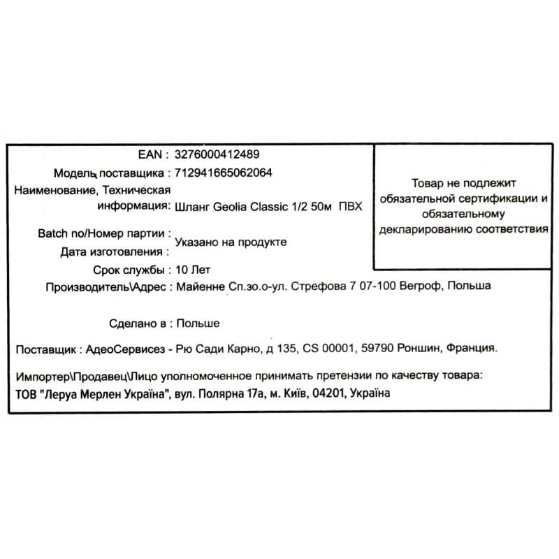 Шланг для полива Geolia Classic 12.5 мм, 50 м