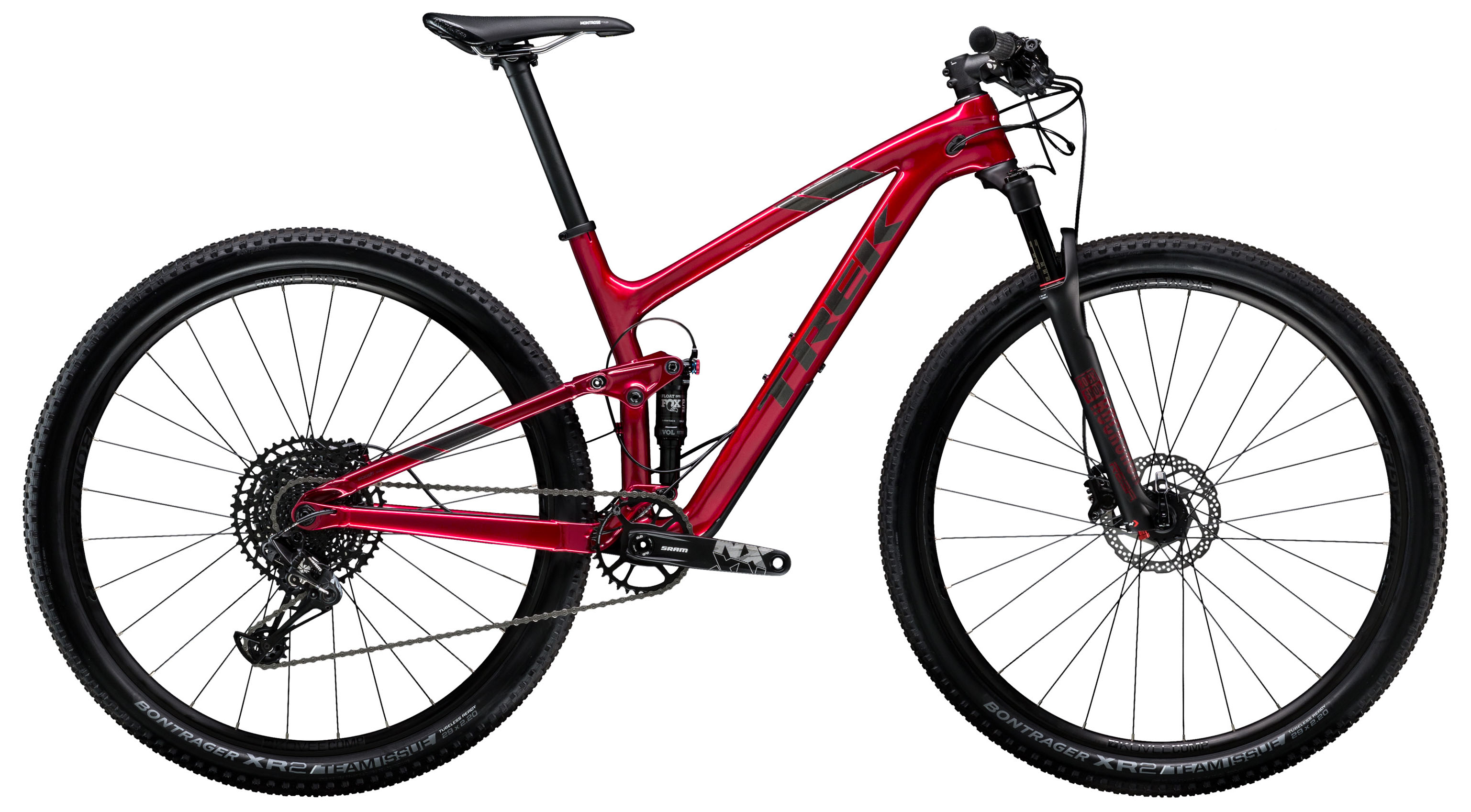 - передняя покрышка Bontrager XR2 Team Issue, Tubeless Ready, 120 tpi, aramid bead, 29x2.20 (13.5 & 15.5: 27.5x2.20)