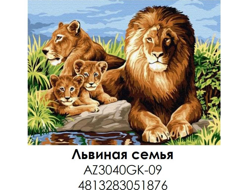 Живопись по номерам картон 30х40см "Львиная семья", Azart,арт. AZ3040GK-09