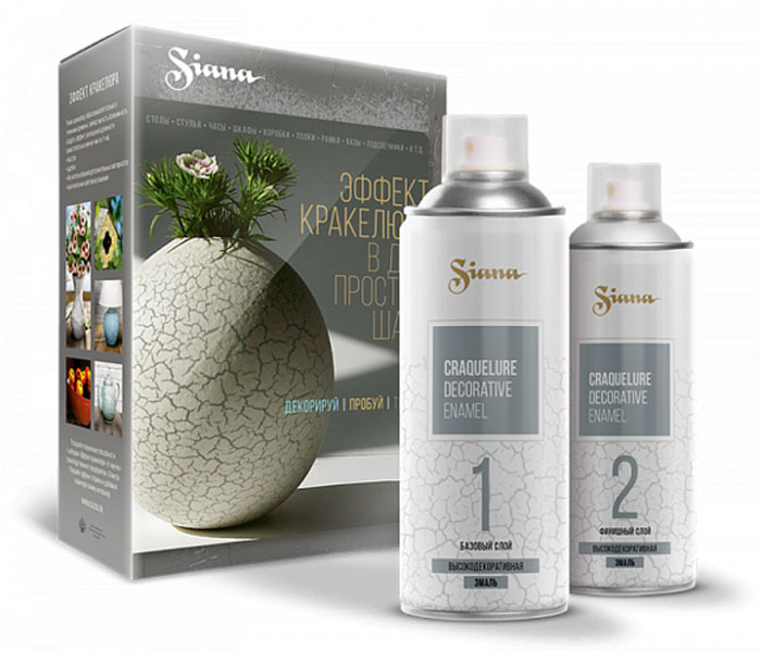 Набор д/декора "Siana" эффект кракелюра белый+серебро 2шт*520мл