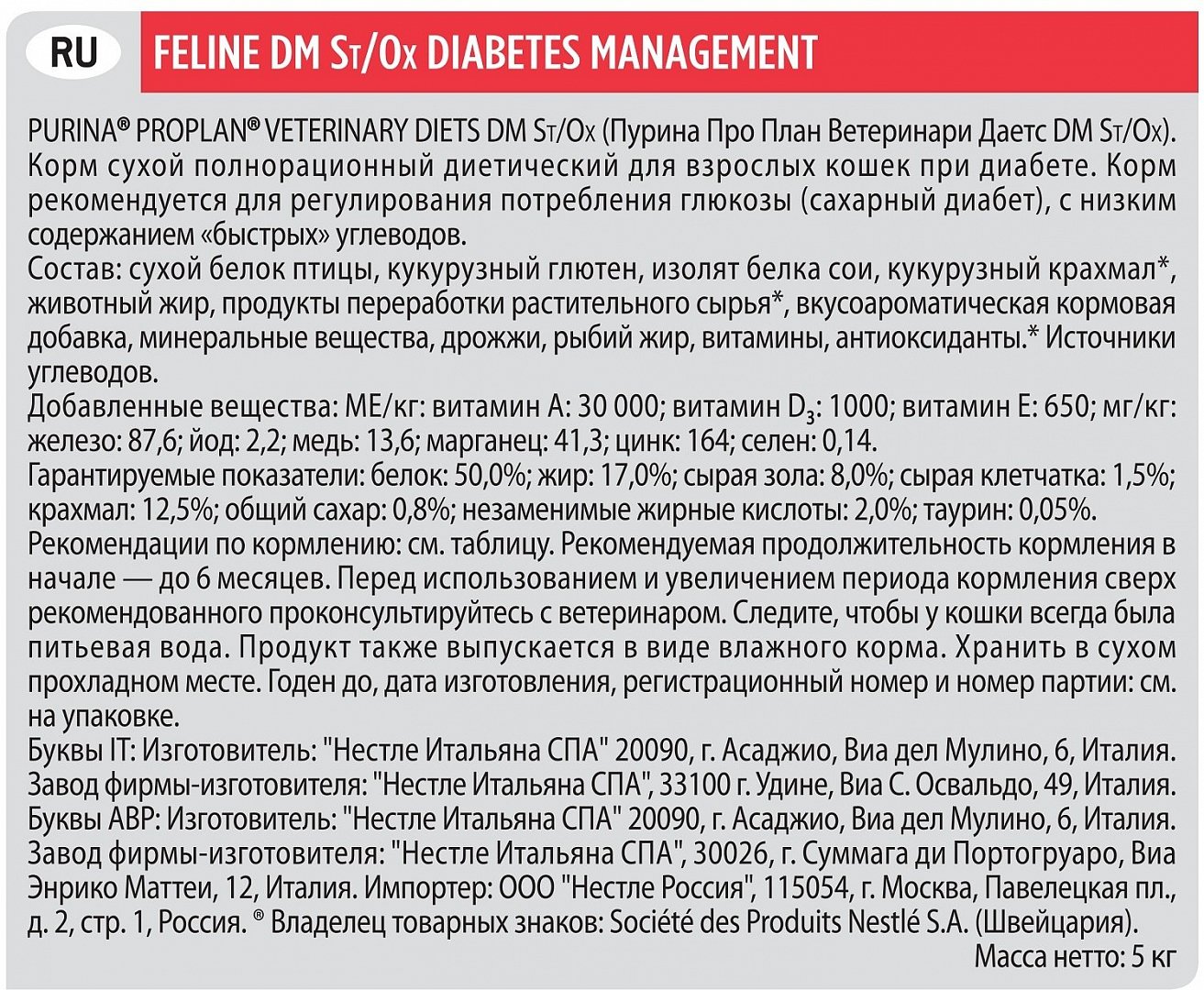 Сухой корм Pro Plan Veterinary Diet DM Diabetic Management для кошек при сахарном диабете