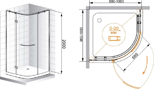 - Материал двери (стенок) закаленное (безопасное) стекло