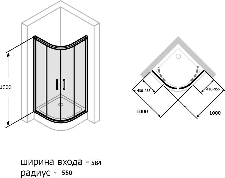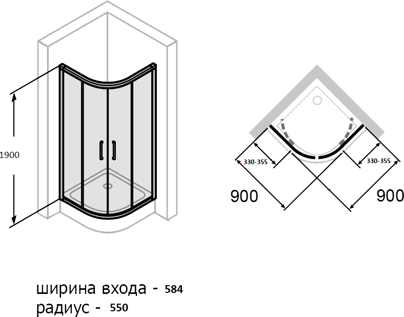 • Материал двери (стенок) закаленное (безопасное) стекло