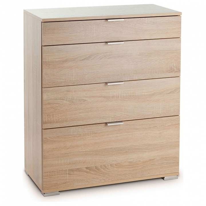 Материал фасада Фасад комода может быть изготовлен из самых разнообразных материалов. ДСП (древесно-стружечная плита) ДСП, изготавливаемый из древесных опилок и стружек, пропитанных связывающим веществом — формальдегидными смолами, является самым распространенным материалом для изготовления корпусной мебели. В производстве мебели для ванных комнат используется специальный вид ДСП – с повышенной влагостойкостью, кроме того поверхность изделий обрабатывается специальными водостойкими эмалями. Плюсы: водостойкость, прочность, легкость в обработке. Минусы: наличие в составе формальдегидных смол, которые в определенном количестве выделяются в воздух, а также невозможность тонкой обработки. ЛДСП (ламинированная ДСП) Это ДСП, облицованная пленкой на основе термореактивных полимеров (бумажно-смоляными пленками). Плюсы: многообразие цветов и фактур, имитация фактуры натурального дерева, устойчивость к всевозможным механическим повреждениям, устойчивость к термическому воздействию. Минусы те же, что и у ДСП. ДВП (древесноволокнистая плита) ДВП производят из натуральной древесины, которую измельчают до волокон. Их увлажняют и прессуют, после чего покрывают лаком или декоративной пленкой. Невысокая цена и долговечность сделали этот материал одним из распространенных в изготовлении задних стенок шкафов, днищ выдвижных ящиков. Технология не дает возможности выпускать такие плиты внушительной толщины, поэтому и весь комплект мебели из них не производят. Однако в своем сегменте они порадует своим отличным качеством, а также повышенной экологичностью. МДФ (мелко-дисперсная фракция) МДФ появился благодаря усовершенствованным технологиям, использовавшимся при производстве древесноволокнистых плит (ДВП). Технологии, применяемые при производстве МДФ, исключают использование фенола и вредных эпоксидных смол, а поэтому гарантируют экологическую чистоту и безвредность изделия для здоровья человека. Изделия из МДФ обладают целым рядом преимуществ: они имеют повышенную ударопрочность, не коробятся от влаги и резких перепадов температуры, устойчивы к различным грибкам и микроорганизмам. Надо отметить, что МДФ стоит дешевле дерева, но превосходит его по многим техническим характеристикам и показателям, таким, например, как влагостойкость и устойчивость механическим повреждениям. Алюминий Для изготовления мебели из алюминия, чаще всего, используется дорогой высококачественный анодированный алюминиевый профиль, который обеспечивает изделиям устойчивость к царапинам и коррозии, не окисляется и не темнеет со временем. Массив дерева Тумба для ванной комнаты, выполненная из дерева, смотрится роскошно и колоритно, однако требует бережного отношения, поскольку подвержена механическим воздействиям. Для защиты от влажного климата ванной поверхность деревянной мебели обычно обрабатывается водоотталкивающим лаком или защищается соответствующим покрытием. Стекло Стеклянный корпус может быть изготовлен из прозрачного или матового стекла. Это наиболее водостойкий материал, так как ни пар, ни большое количество воды не могут его повредить. Мебель из стекла очень гигиенична, за ней легко ухаживать и поддерживать в чистоте. Недостаток: сильный удар может ее повредить. Пластик Пластик – один из очень популярных и практичных мат