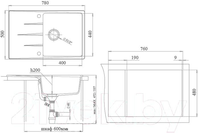 - Комплект поставки крепления, сифон, шаблон для врезки