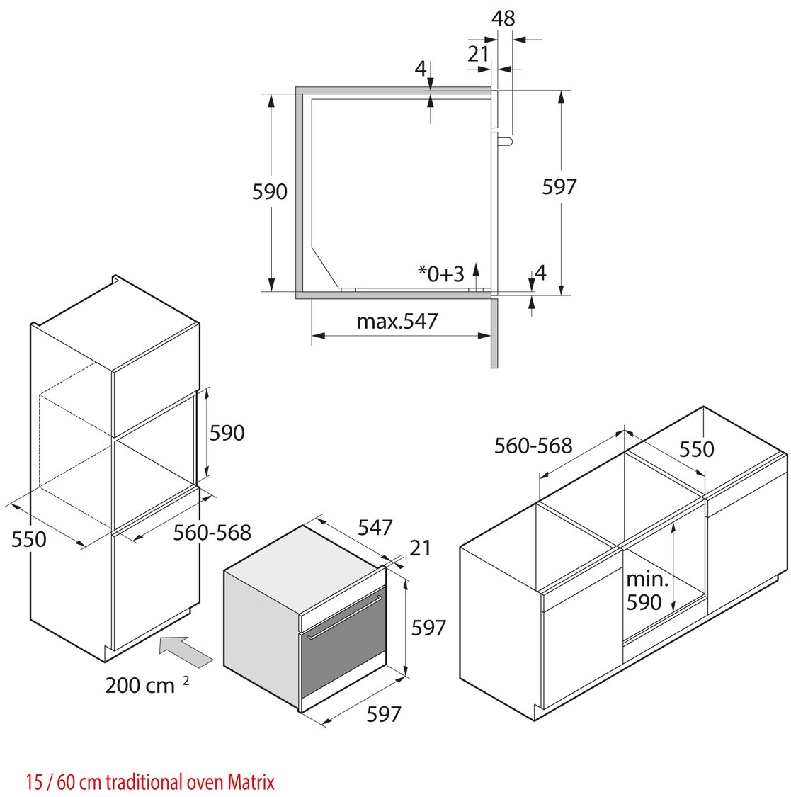 - Размеры для встраивания (ВхШхГ) 590x560x550 мм