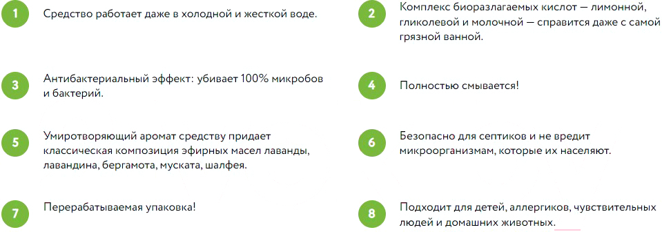 • Действие ароматизирует воздух, дезинфицирует, очищает, удаляет известковый налет, удаляет ржавчину