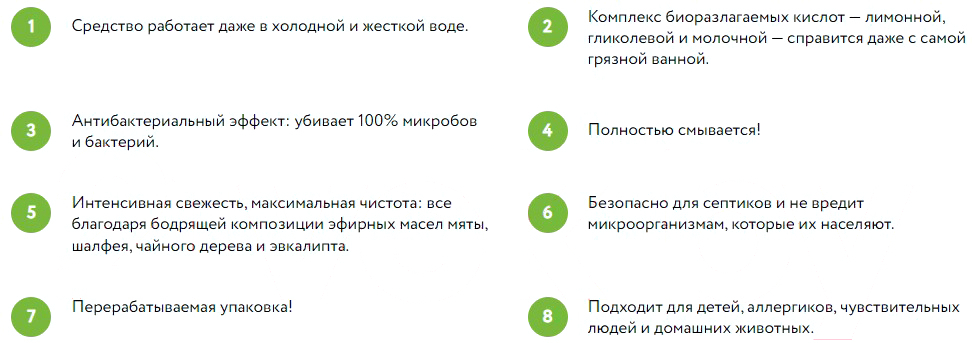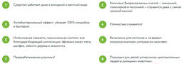 • Действие ароматизирует воздух, дезинфицирует, очищает, удаляет известковый налет, удаляет ржавчину