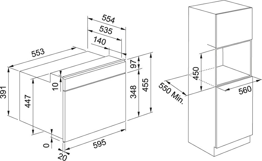 - Размеры для встраивания (ВхШхГ) 450x560x550 мм