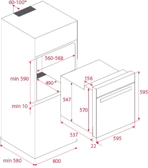 - Размеры для встраивания (ВхШхГ) 600x560x580 мм