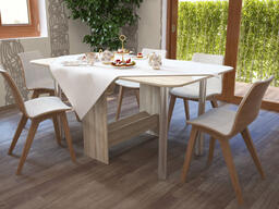 - Тип В зависимости от своего функционального назначения и конструкции столы делятся на следующие типы: · компьютерный: предназначен для удобной работы с компьютерной техникой; · журнальный: как правило, характеризуется небольшими габаритами. Предназначен для установки в гостиных, преимущественно, в качестве декоративного элемента в интерьере; · обеденный: стол для приема пищи одного или нескольких человек. Чаще всего используется на кухнях и в гостиных. Обеденные столы могут быть разных размеров, выбор тех или иных параметров зависит от площади и стилистики помещения; · барный: высокий стол, которым удобно пользоваться как стоя, так и сидя на специальном барном стуле; · письменный: стол для организации рабочего пространства. На нем могут располагаться офисные принадлежности, ноутбук и другие вещи, необходимые для работы; · туалетный: предназначен для хранения косметики, аксессуаров для волос, украшений, часто выполняет эстетическую функцию. Как правило, такой столик располагается в спальне и является не только функциональным, но и декоративным атрибутом интерьера. · столовый гарнитур: включает в себя обеденный стол и набор стульев к нему; · стол-трансформер: конструкция, которая может из небольшого журнального столика превращаться в габаритный обеденный стол; · стол-книга: складное изделие, которое в сложенном виде напоминает тумбу, в разложенном выполняет функцию стола; · стол для переговоров: большинство таких изделий характеризуется основательной конструкцией, солидным дизайном, выполнено из элитного материала. Столы для переговоров устанавливаются в приемных кабинетах административных зданий, учреждений, коммерческих организаций; · сервировочный столик: передвижная конструкция, которая оснащается колесиками и/или складным механизмом; · приставной: обладает компактными размерами, увеличивает функциональность помещения, обеспечивает дополнительное место для хранения необходимых подручных вещей. Изделие обладает особой конструкцией, с помощью которой столик может приставляться к поверхностям дивана, кровати, обеденного стола и т.д. Тип обеденный стол,стол-книга