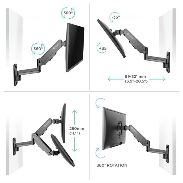 • Дополнительная информация расстояние от основания: 99 ~ 521 мм; угол наклона: 35° ~ +35°; вращение экрана: 180°