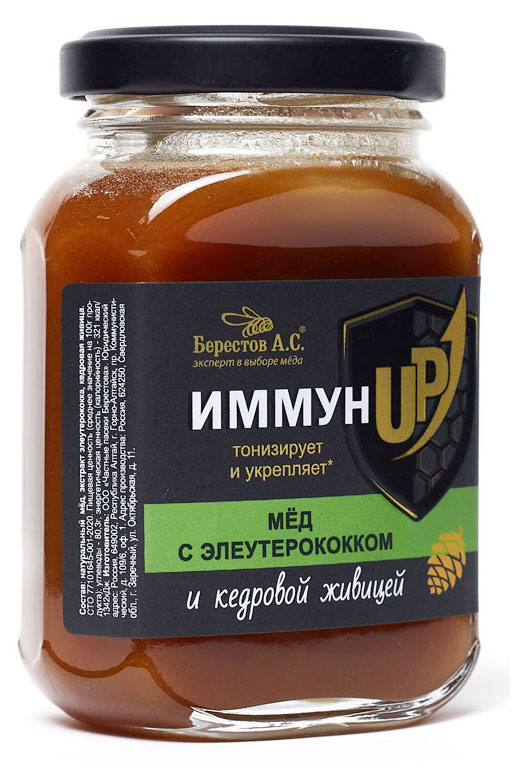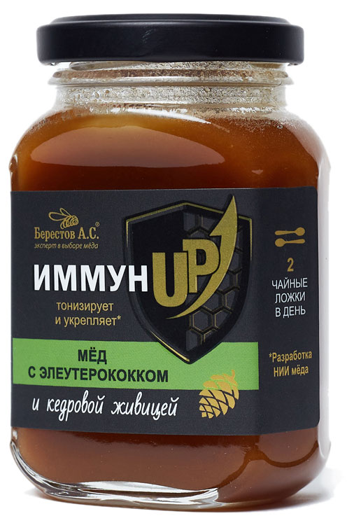- Ингредиенты Мёд натуральный, живица кедровая, экстракт элеутерококка