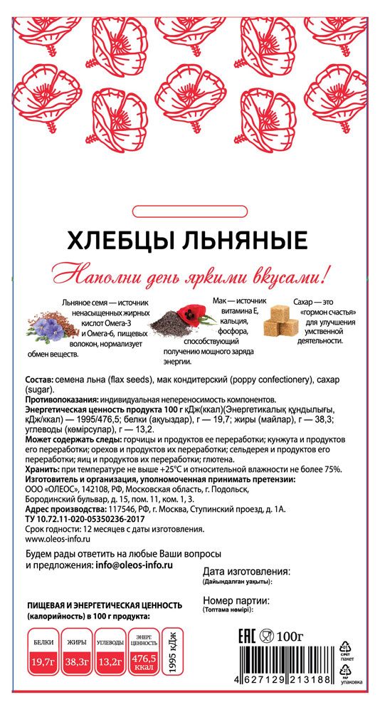 - Ингредиенты Семена льна, мак кондитерский, сахар