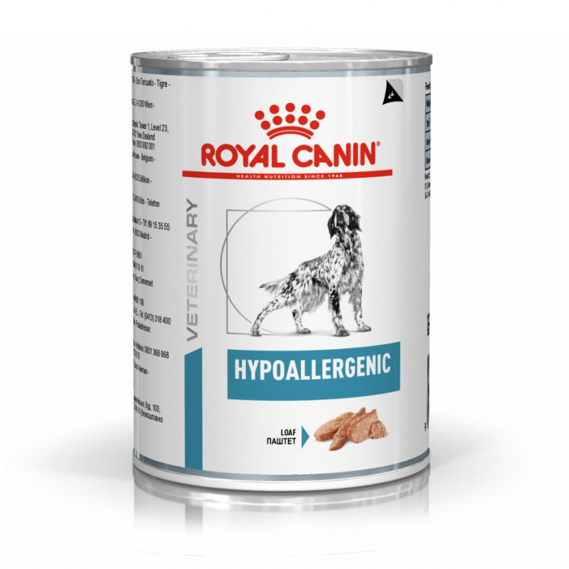 Royal Canin Hypoallergenic - ветеринарная диета для собак при пищевой аллергии или непереносимости. Влажный корм Hypoallergenic содержит гидролизированный соевый белок, как и гамма сухих продуктов Hypoallergenic, что позволяет комбинировать сухой и влажный рационы, либо использовать каждый вид отдельно, учитывая физиологические потребности и пищевые предпочтения собак.