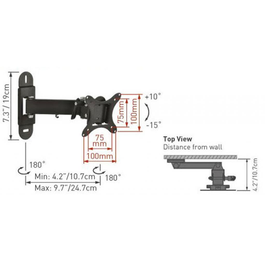 Телевізійний кронштейн EVEREST E13-EV.B широко використовується для кріплення РК-панелей на стіну, шляхом зачеплення телевізора до кронштейна. Максимальна діагональ телевізора, на яку розрахований даний кронштейн, становить 26 дюймів. Тип кріплення, використовуваний в даній моделі - VESA 100x100, VESA 75x75. Кронштейн має кут нахилу -15 ° / + 10 ° і функцію повороту, що дає можливість регулювати екран ближче або далі, фіксувати його в різних положеннях зручних для перегляду, підвішувати в кутах. Максимальне розраховане навантаження дозволяє витримувати вагу до 15 кг. У комплекті є всі кріпильні деталі, необхідні для монтажу.