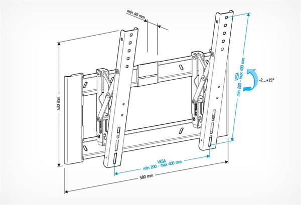 • Стандарт Vesa 200х200, 200х300, 300х300, 400х200, 400х400 мм