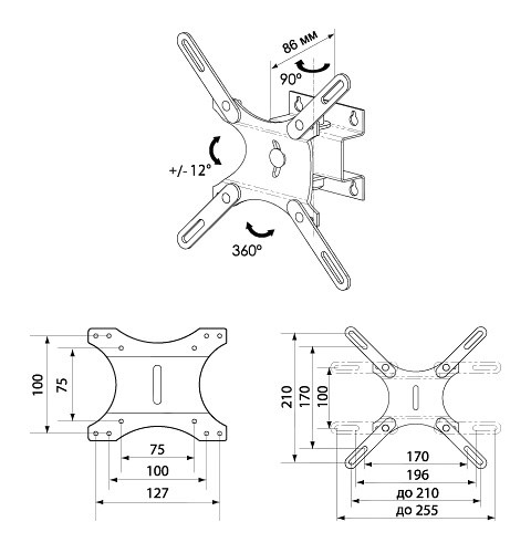 - Описание Trone LPS 4011/ Тип наклонно-поворотный / Диагональ 15"-26" / Максимальная нагрузка 25 кг/ Угол наклона +12-12