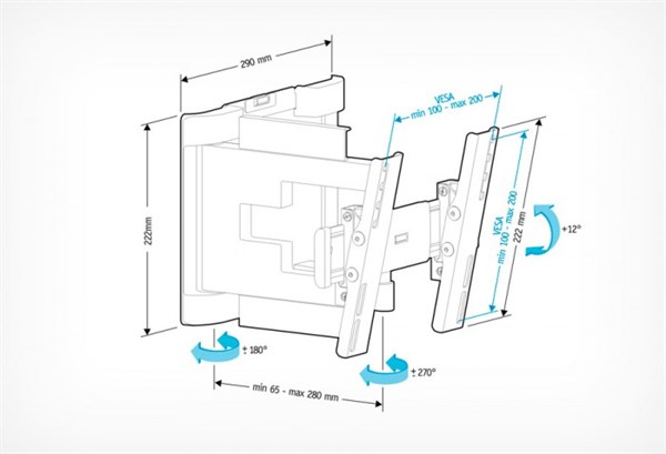 - Описание Holder LEDS-7014/ Тип кронштейн / Диагональ 26"-42" / Максимальная нагрузка 20 кг/