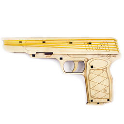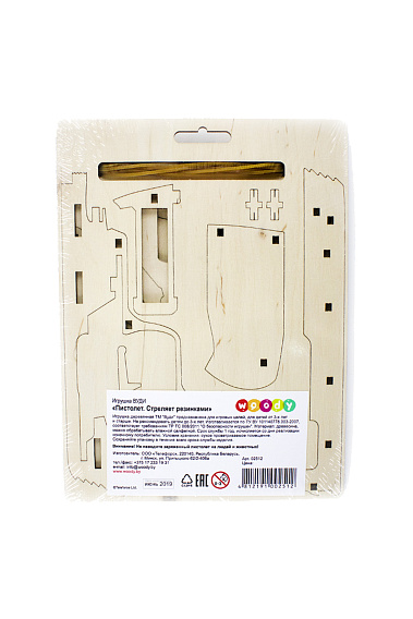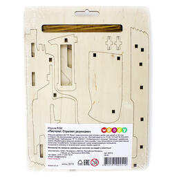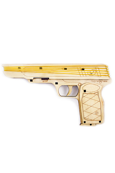 Для сборки пистолета сложите конструктор из деревянных деталей, проявив навыки смекалки, логического мышления и концентрацию. В комплект входят: подробная инструкция, 33 деревянных элемента со специальным креплением для сборки без клея, пять резинок, которые устанавливаются в засечки затвора пистолета и две резинки для работы стреляющего механизма. Для удобного хранения резинок, в нижней части рукоятки предусмотрено выдвижное отверстие. Все детали пистолета изготовлены из натурального дерева, безопасного и гипоаллергенного материала. На корпусе предусмотрена кнопка "ON/ OFF" (включение/ выключение). Когда ребенок вдоволь настрелялся, нажмите на неё и перещелкните в режим "OFF", пистолет заблокируется. А для продолжения игры переведите кнопку в режим "ON".