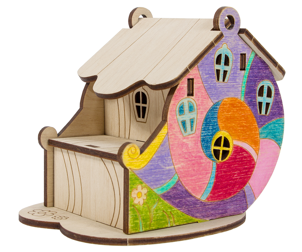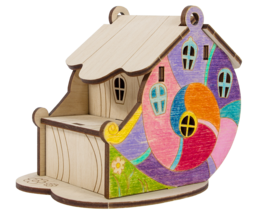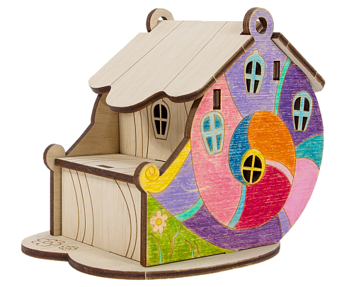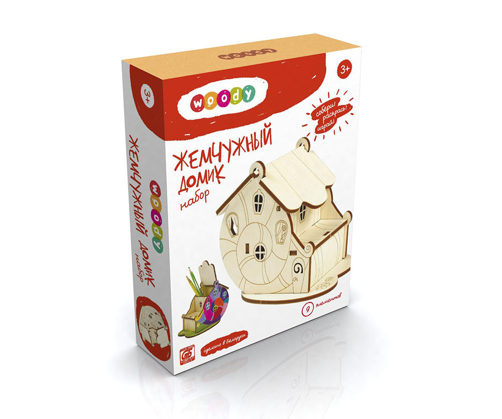 Простой способ украсить интерьер детской комнаты – создать что-то вместе с ребёнком. Необычная карандашница или шкатулка для мелких предметов, собранная и разукрашенная своими руками понравится Вашему малышу и удивит гостей. «Жемчужный домик» из серии «Сказочные домики» - это конструктор с небольшим количеством деталей для детей с 3-х лет. Развивает пространственное мышление, мелкую моторику рук, творческие способности. Домик сделан из дерева без пропиток и красителей – настоящая экологичная раскраска. Внутри сюрприз – добрая сказка «Мечта Бусинки».