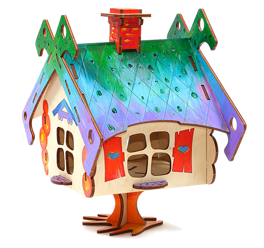 Игрушка состоит из элементов, из которых собирается избушка бабы Яги. Игрушка развивает координацию, моторику, внимание и пространственное воображение. Игрушка идеальна для разукрашивания!
