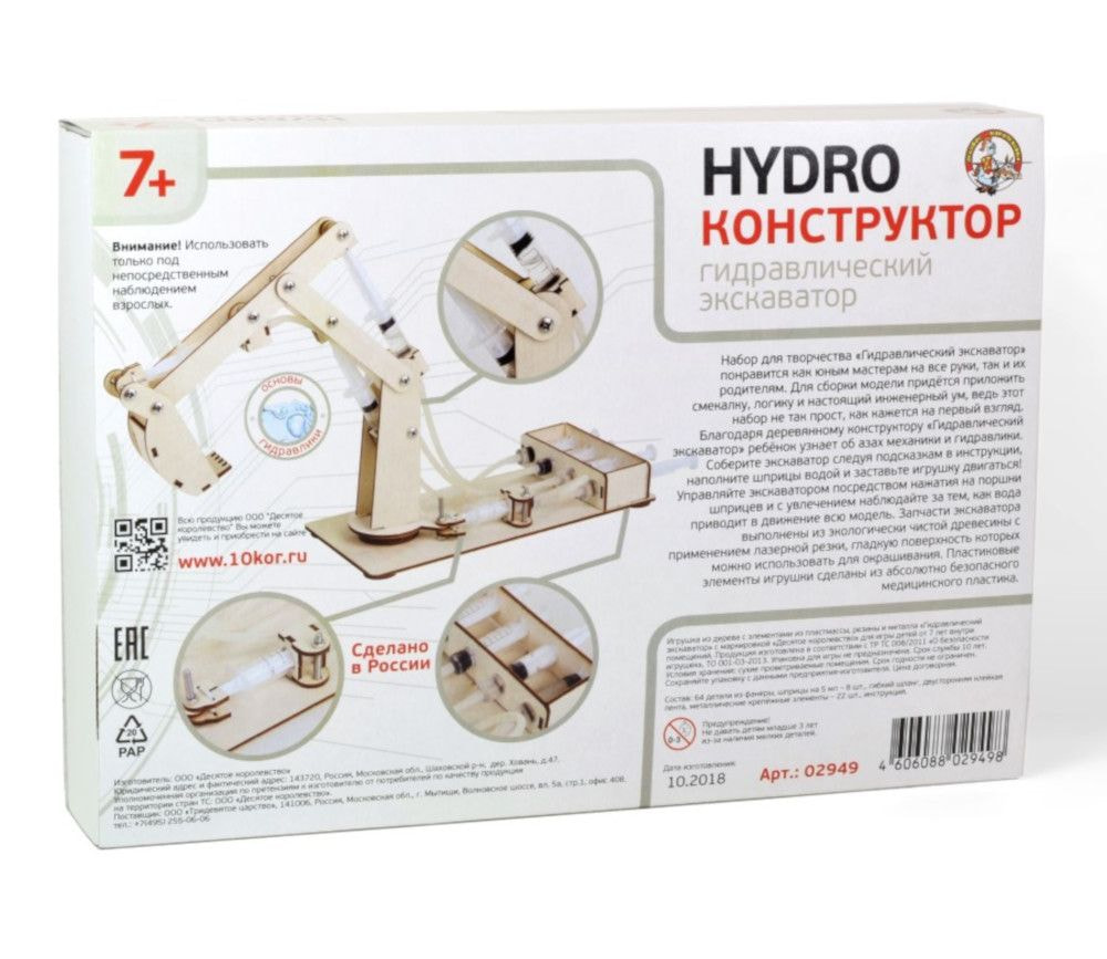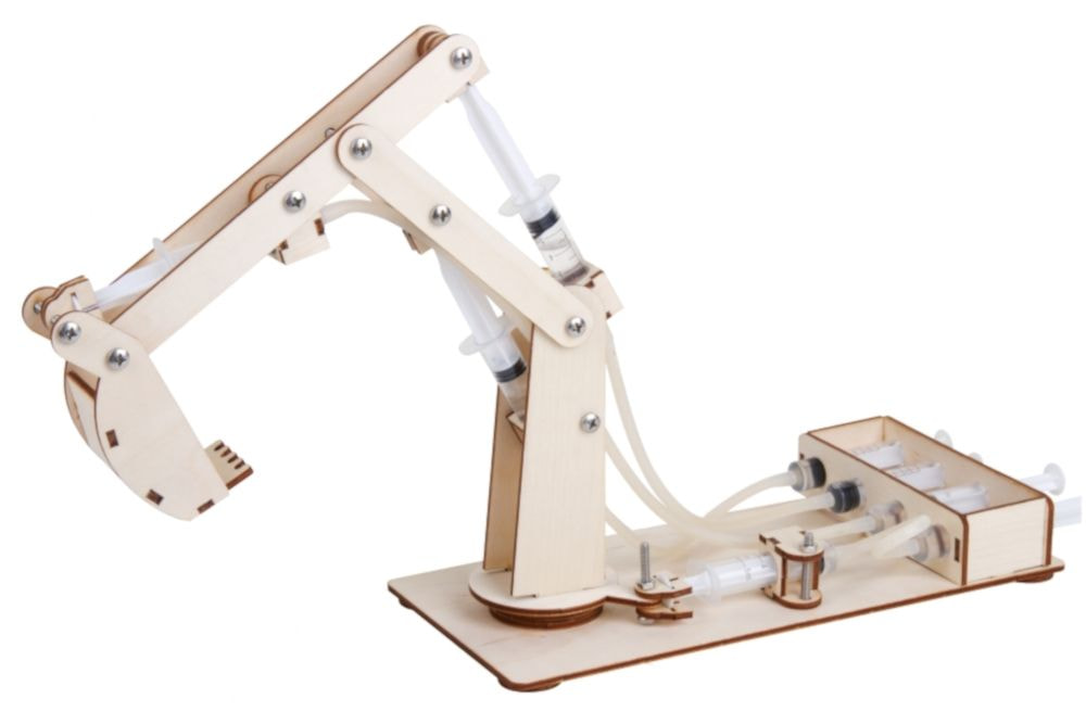 Соберите экскаватор следуя подсказкам в инструкции, наполните шприцы водой и заставьте игрушку двигаться! Управляйте экскаватором посредством нажатия на поршни шприцев и с увлечением наблюдайте за тем, как вода приводит в движение всю модель.